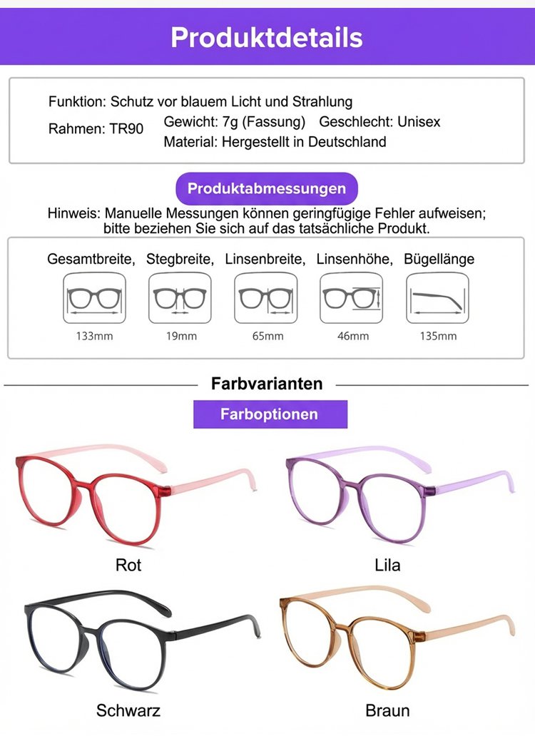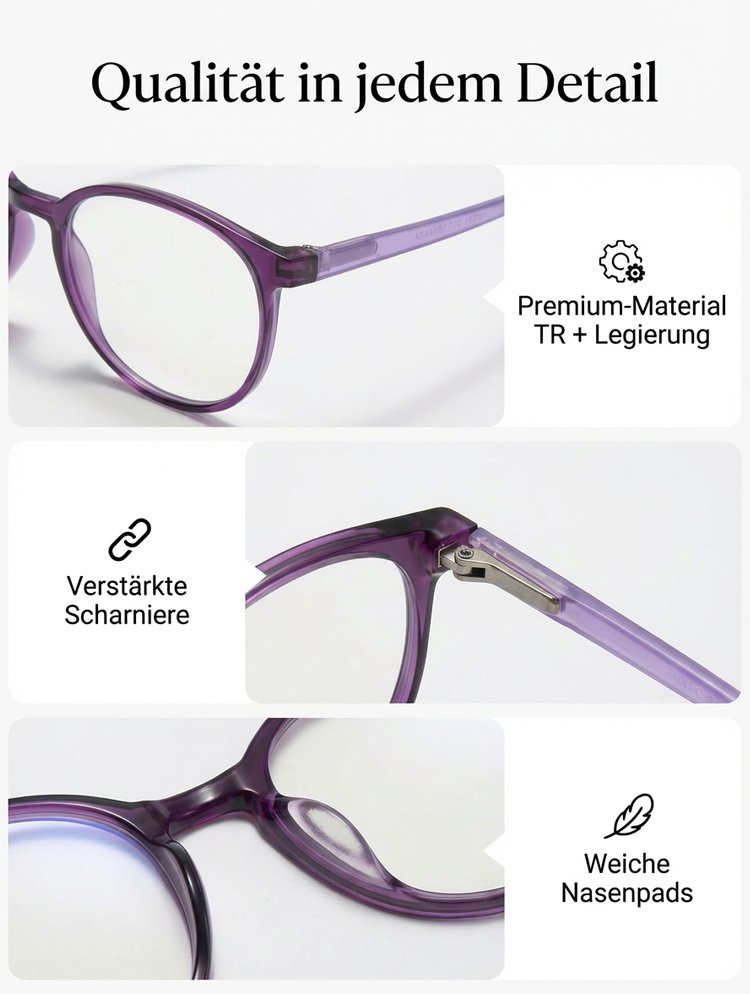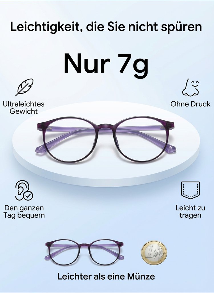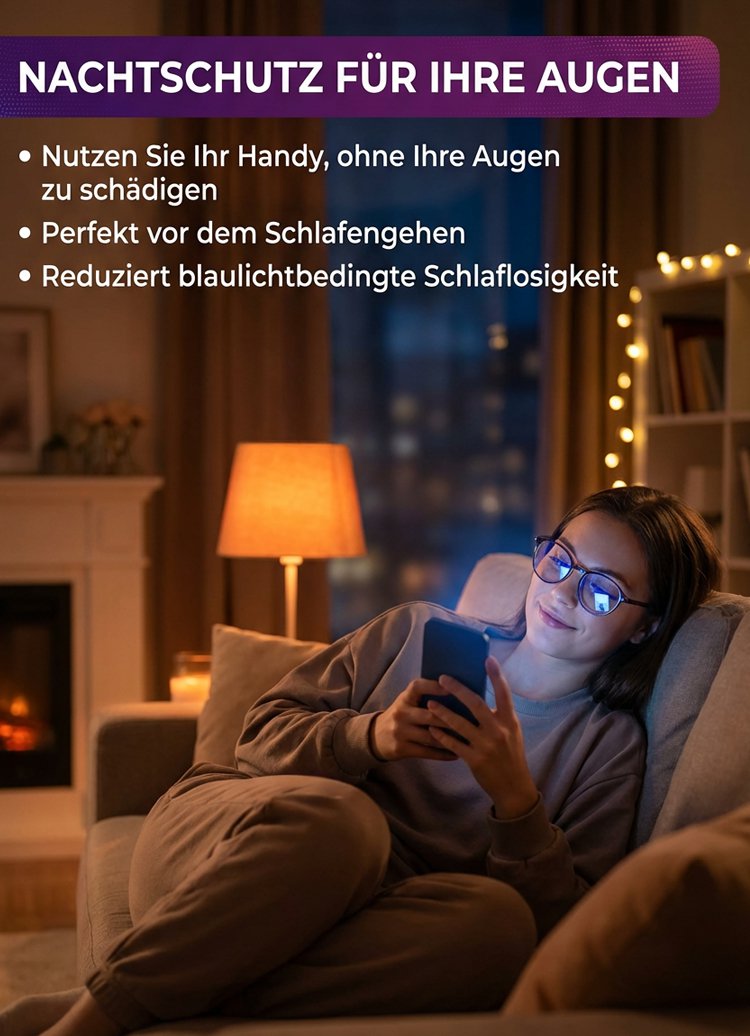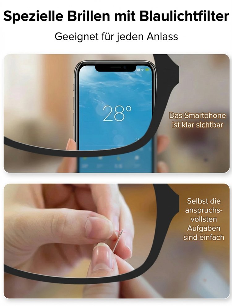 Blaulichtfilter-Brille mit Autofokus für Nah- und Fernsicht.