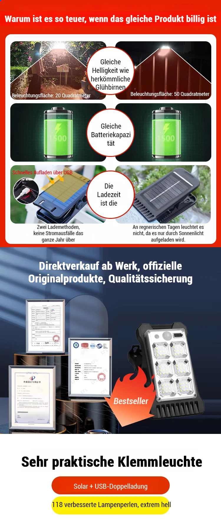 Intelligente Sensor-Solar-Klemmleuchte