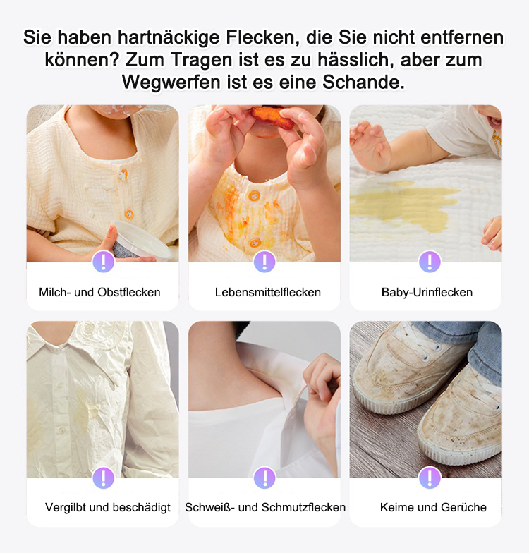 ✨Öl-/Schweißflecken & Farbübertragung weg! 10 Min einweichen, keine harte Reibung, Weißgrad um 300% gesteigert, neutrales PH, sicher für Schwangere & Babys, Fasern schonend, maschinen- & handwaschbar, EU-Öko-zertifiziert, jetzt 20% sparen!
