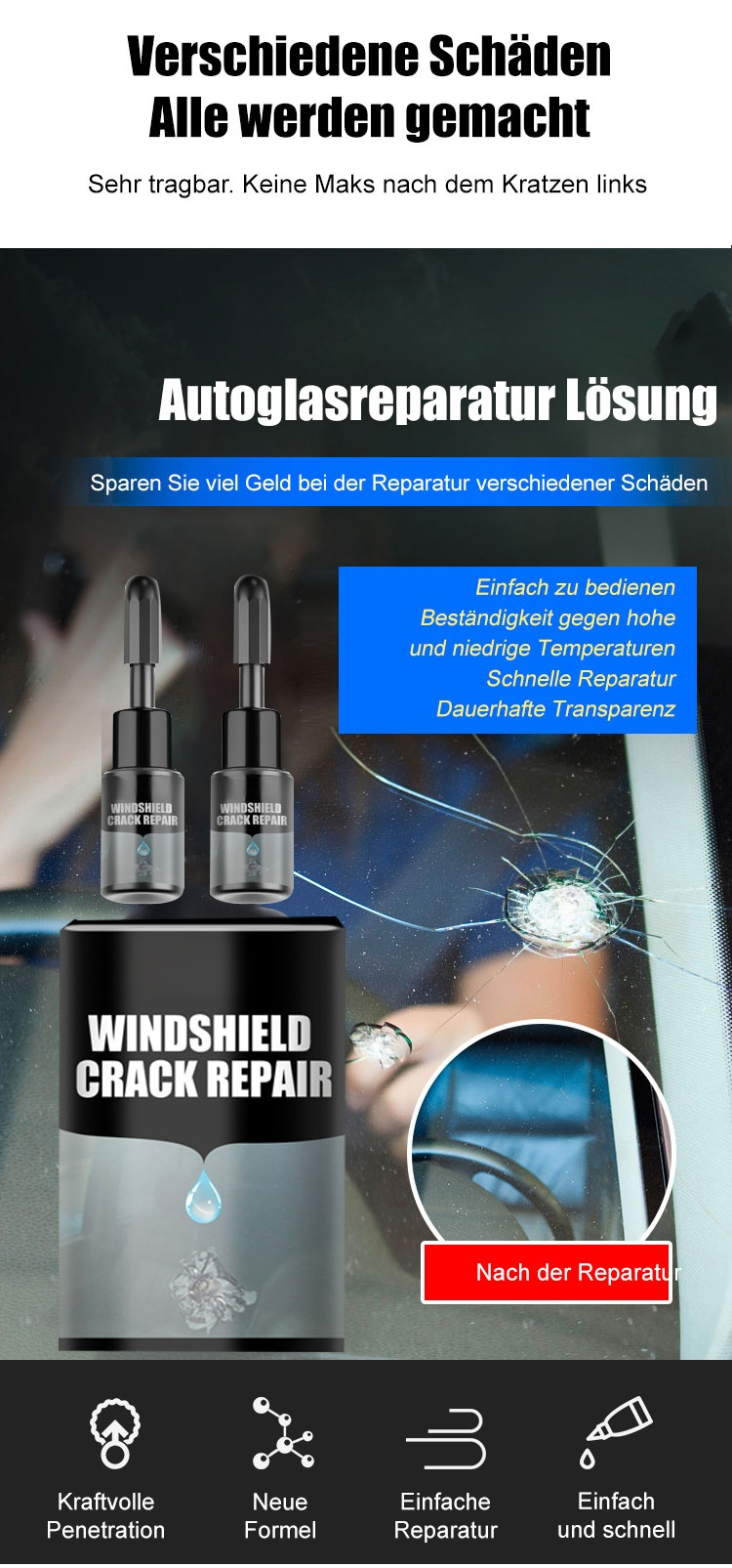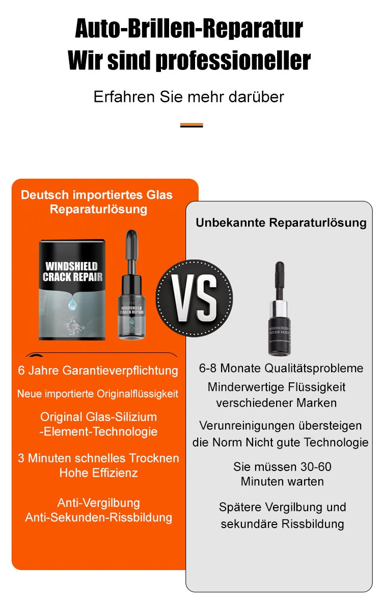 Reparaturflüssigkeit für gesprungenes Glas